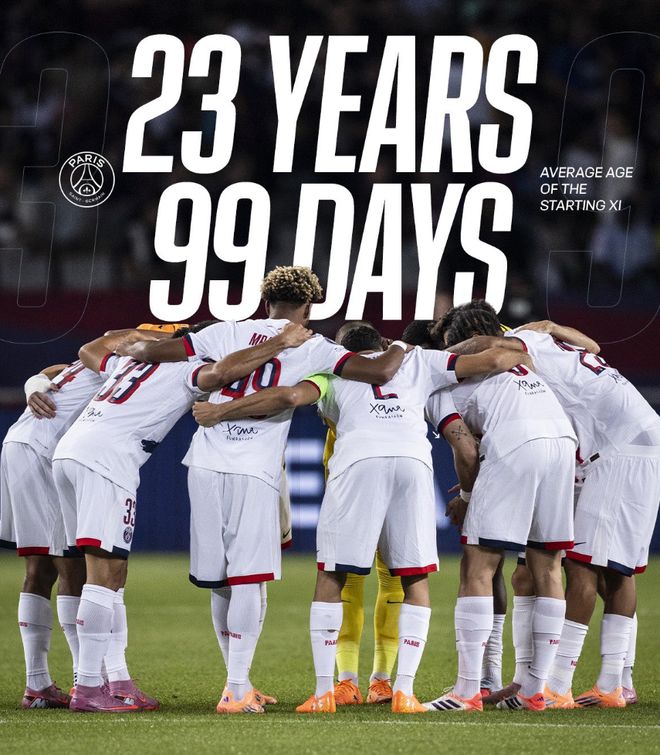 - 欧冠 | 巴黎对阵巴萨阵容平均年龄23岁99天,历史卫冕冠军第二年轻