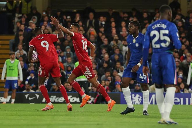 前45分钟,重回世俱杯决赛排阵、但多处都是“穷人版”球员抱佛脚的切尔西,显然是更早放下包袱的那一方,球员的专注度更值得点赞,直到易边前,阿昌庞出球被断最终招致伊萨克禁区内头球高出,才是蓝军首次被抓到的主动失误。反观利物浦则是更疲惫、更沉闷、更生疏,重回上季套路的前场配置,非但没能激活熟悉感,在强压迫下也失去了淡定。但双方首发硬实力差距毕竟肉眼可见,当萨拉赫易边后迅速两次威胁球门后,马雷斯卡立刻换下了略显笨重的巴迪亚希尔,里斯·詹姆斯更多回到禁区内参与协防,但就是这个时间段被利物浦抓住,伊萨克给哈克波的助攻有如神来之笔,本场的剧本,俨然是标王各管半场球?