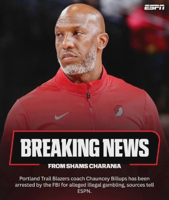 出大事了,闹翻天了。开拓者主帅比卢普斯因参与非法赌博被逮捕,该案件还涉及黑手党的非法扑克经营。