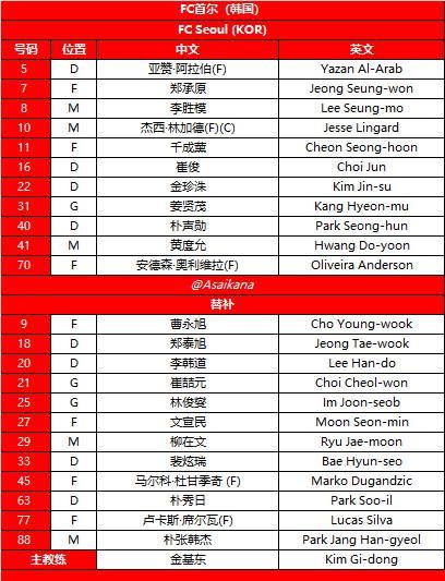 首尔FC方面的首发,外援仅有林加德、亚赞以及奥利维拉登场,杜甘季奇、席尔瓦均坐镇替补席。在前3轮比赛中,首尔FC取得1胜1平1负的战绩,其中首败便是客场输给中超球队上海申花,目前他们与申花同积4分排在第6。