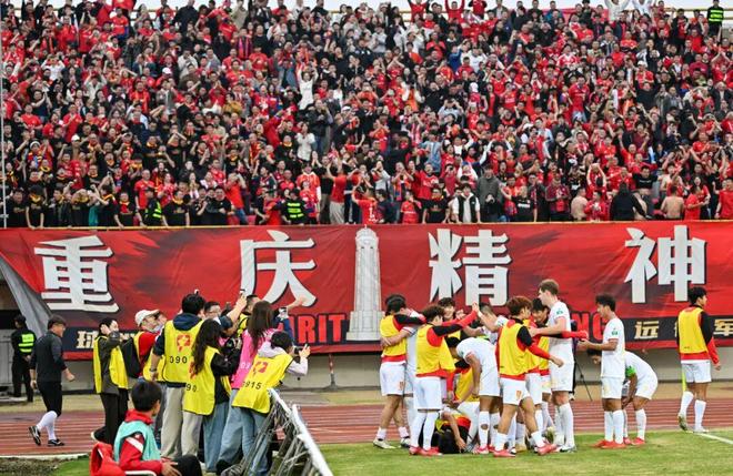 11月8日,上海嘉定体育中心,主队在赛后为冲超的客队播放起了庆祝音乐,这是十分少见的。重庆足球在中国足球的版图里,20多年来一直赫赫有名。三年前,两江竞技解散前夕,全国有无数媒体呼吁“重庆不能没有足球”,这是重庆足球危难之际,各方伸出的援手,只可惜,结局并没有改变。